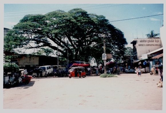 Magnifique arbre abritant un marché et les incontournables tulk-tulk locaux (genre de mobilette-taxi).